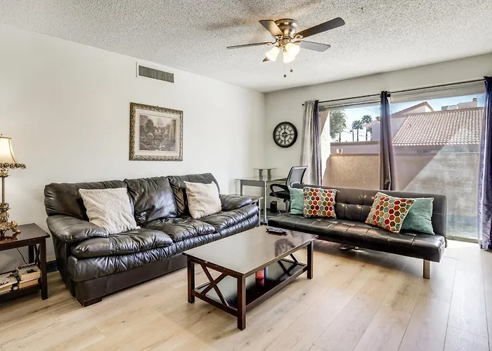 Wfh-Friendly Las Vegas Condo 2 Mi To Strip! features an oven and a dishwasher in a fully furnished kitchen. UNLV Transit Center bus station can be found 950 m from the apartment. This apartment opens onto a patio.